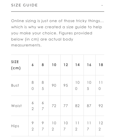 Ella & Sunday are from Noosa Qld since 2015 & follow the seasonal timelines of Summer & Winter to release only two new collections per year. They focus on using natural fibres including cotton, linen, silk & blends of cotton/linen & cotton/silk. Fabrics are hand printed using traditional techniques. The limited collections are made under their watchful eye in ethically managed fashion houses in India. They personally visit their tailors & work along side the teams that make their garments. Size chart by Ella & Sunday.